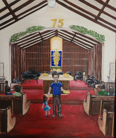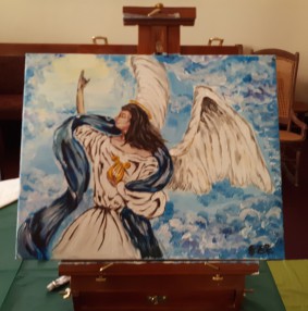 One of the highlights of our 2018 Advent season was the creation of a work of art during one of our worship celebrations. Alexi Pyles, a member of our church, painted while the activities of worship went on around her. People were invited to get up and go and watch her progress during the singing of the carols. The finished creation is presented here.
