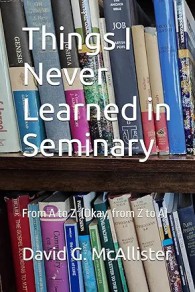 "The book is entitled, Things I Never Learned in Seminary: From A to Z (Okay, from Z to A). As much as I still value my seminary experience, and as much as it laid a strong foundation for my life in ministry, there were many things that just were not a part of the curriculum when I attended seminary. Some of the topics that I have written about in this book may be things that are now taught in some seminaries, but I would venture to say that most of them are not taught in any formal way. With some serious sharing, and humor mixed in at various points, I hope that readers will discover new insights for themselves, including offering lay persons a look into some of the challenges of ministry that accompany also great moments of joy. The book is available at Amazon.com."